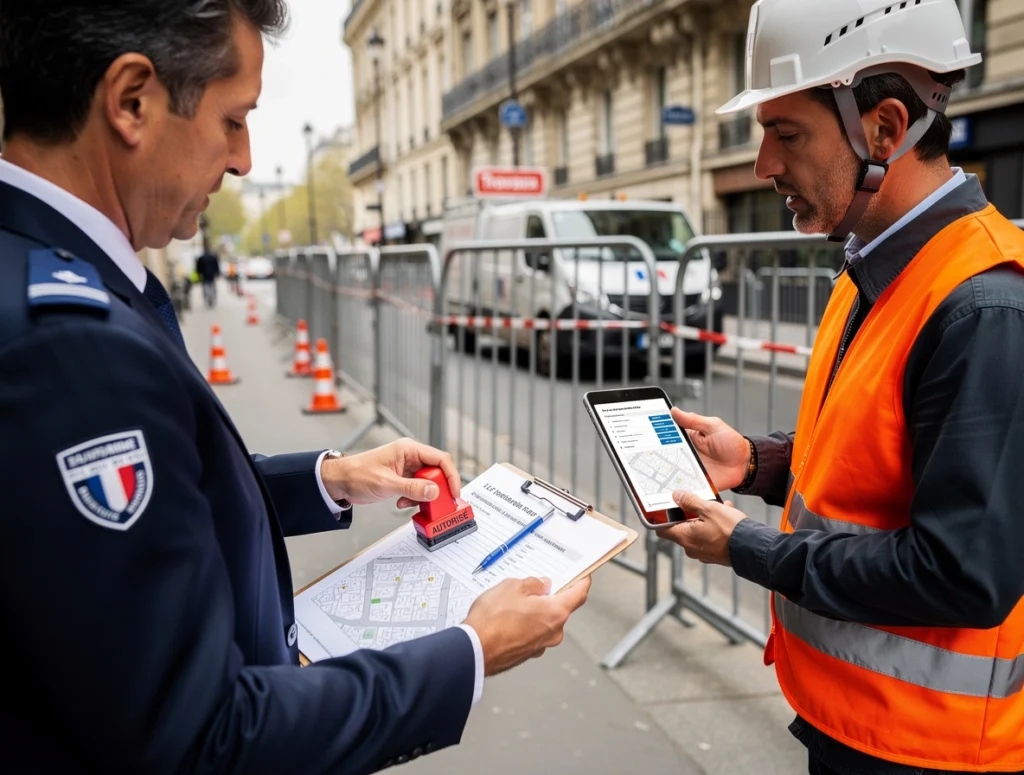 La première étape consiste à soumettre une demande d’arrêté de voirie à la Section Territoriale de Voirie correspondant à l’arrondissement où se situe le chantier. Cette demande doit être effectuée au moins 15 jours ouvrés avant la date prévue d’installation des barrières.